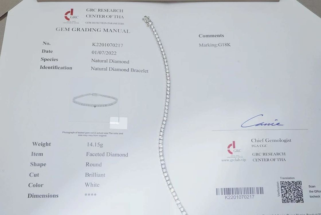 Bu kadınsı ve lüks tenis bileziği, retro çağın Art Deco mücevher tarzlarını anımsatan, en sevimli yüzlü güllü elmaslardan yapılmıştır.Çağdaş bir stil için gerçek 10 karat sarı altın bağlantılarla.Elmaslar doğal olarak çatışma içermeyen kaynaklardan çıkarılır ve harika bir parlaklık verir.Elmaslar daha büyük bir yan çizgisi için yüzlü yuvarlak bir çerçeve ile bir yanılsama ortamında ayarlanmıştır.Bu gerçek taşlar, elmas keskinliğinin ortasında olan vs'nin berraklık derecesine sahiptir.