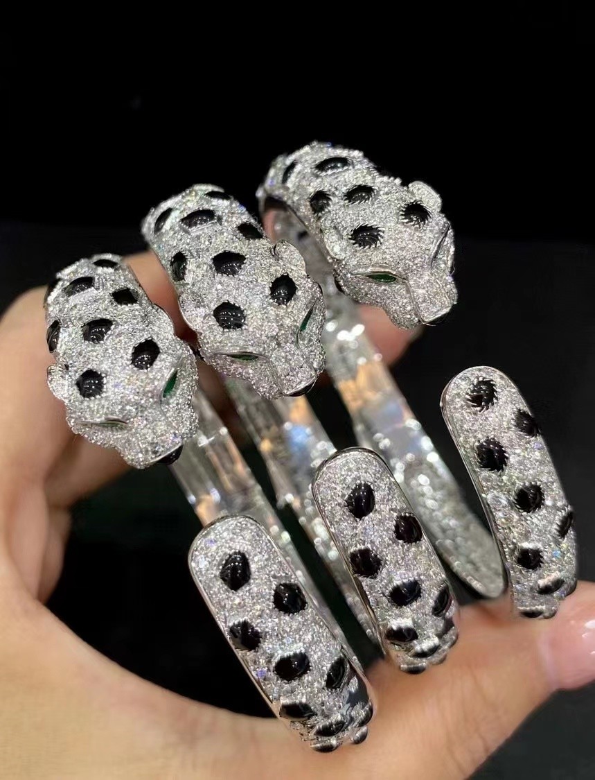 özel altın mücevherleri Panthère de Brand modeli 18K Altın Onyx, Zümrütler Elmas Bilezik lüks elmas mücevher markaları